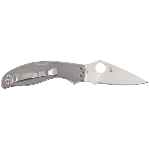 Spyderco UpTern – це складаний ніж і гордий член сімейства Value Folders. Клинок профілю Drop Point виконаний з класичною для Spyderco геометрією «потрійний клин» з нержавіючої сталі 8Cr13MoV твердістю 56-59 HRC з сатиновим, антибліковим фінішем. На обусі клинка передбачені дрібні насічки для упору великим пальцем. У робоче положення клинок наводиться за допомогою зручного підпальцевого отвору. Фіксується у відкритому вигляді за допомогою замка Back Lock. Накладки на руків’ї виконані із міцної нержавіючої сталі із зручними виїмками під пальці. 4-х позиційна кліпса може бути встановлена вгорі або внизу руків’я як з правої сторони для правші, так і з лівої – для шульги. Модель доступна зі звичайною різальною кромкою та напівсерейтором.