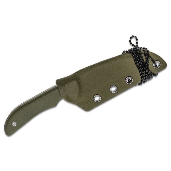 Ергономічна рукоять з накладками трьох кольорів виготовлена з міцного склотекстоліту G-10 і закріплена за допомогою двох гвинтів. Ніж йде в комплекті з фірмовими піхвами.
