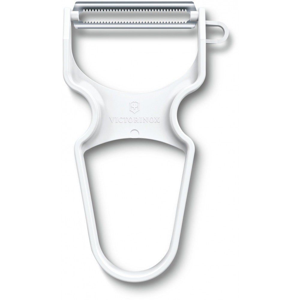 Овочечистка RAPID від Victorinox (колір – білий) – це практичний кухонний інструмент із подвійним зубчастим лезом, який дозволяє легко чистити будь-які фрукти та овочі. Чудово підходить для видалення шкірки з ківі та томатів.