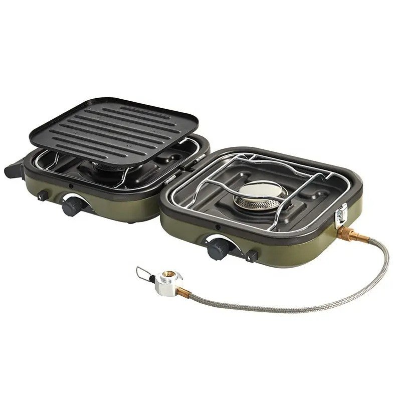 - портативний пальник-гриль із двома конфорками;