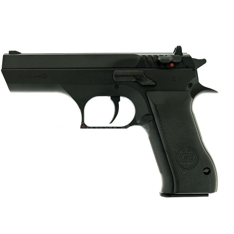 Удобная эргономичная рукоять со специальными съемными пластиковыми накладками не дает руке соскальзывать и способствует увеличению прицельной дальности стрельбы. Скорость пули составляет около 120 м/с. Вес оружия 900 граммов позволяет получить ощущения сходные с теми, которые возникают при пользовании боевыми моделями. Пистолет Jericho 941 от KWC имеет довольно вместительную обойму, рассчитанную на 21 стальной шарика типа ВВ. Сам магазин также оснащен пружинным подавателем.