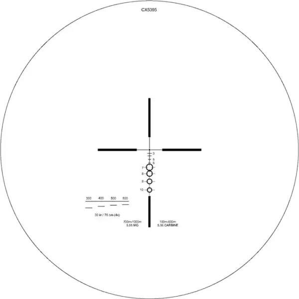 - 5 рівнів підсвічування прицільної сітки та 5 рівнів підсвічування прицільної марки. Сумісна з ПНО AN/PVS-22.