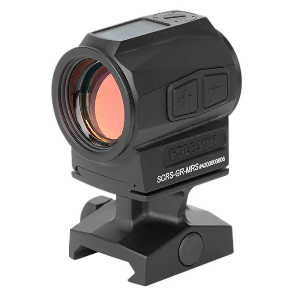 Коліматорний приціл Holosun SCRS-MRS (Solar Charging Rifle Sight) призначений для встановлення на карабіни і рушниці та має подвійне джерело живлення. Працює приціл від сонячного елемента або внутрішньої незнімної батареї, яка перезаряджається від сонячної енергії. Сонячна панель підтримує роботу батареї, діє як датчик освітленості (дає змогу пристрою автоматично регулювати яскравість точки залежно від освітлення) і в разі розрядження батареї є незалежним джерелом енергії.