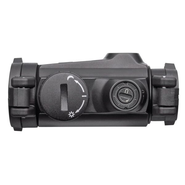 Прицільна сітка — червона точка, що світиться 2 МОА — має 12 рівнів яскравості: 10 для денного освітлення та 2 рівні для нічного режиму. Видима за будь-яких умов освітлення. Антивідблиск покриття лінз з просвітленням гарантує яскраву і чітку картинку в будь-яку погоду. Необмежений окуляр дозволяє захопити точку прицілювання та мету, незалежно від відстані ока від прицілу.