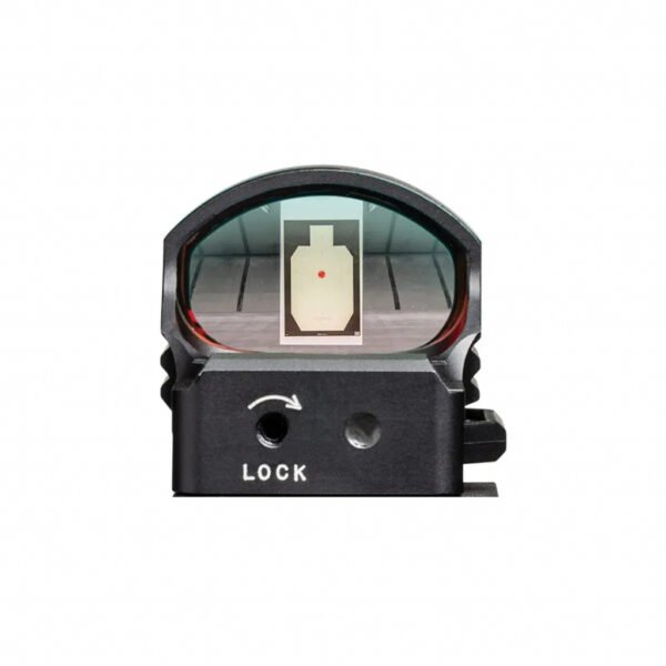 Велике вікно, захищене міцним корпусом з алюмінієвого сплаву, забезпечує чітке і контрастне від краю до краю зображення з широким полем зору. Розташований збоку батарейний відсік дозволяє замінити батарею, не знімаючи приціл зі зброї. Міцний і довговічний, цей приціл важить всього 68 г разом з кріпленням.