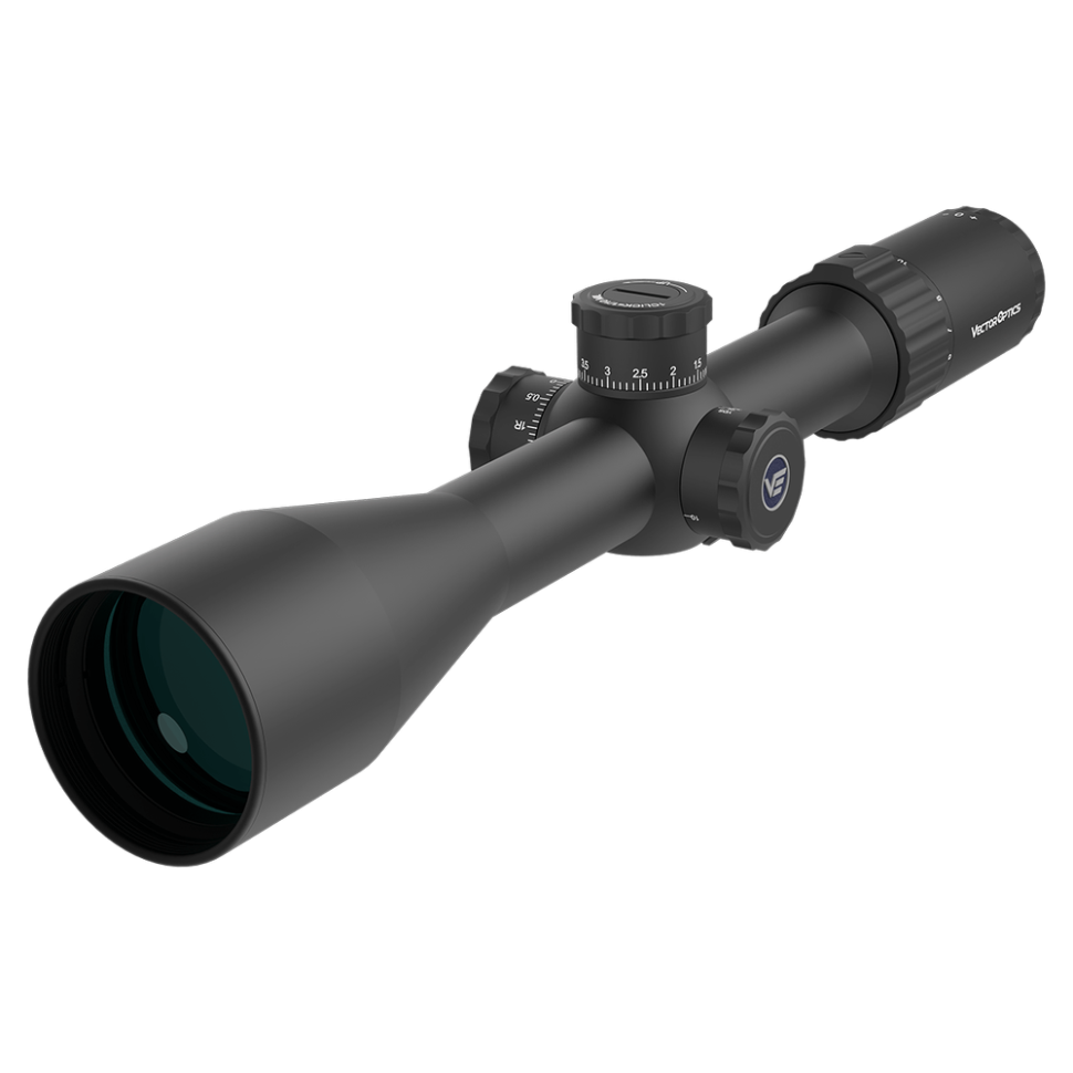 Vector Optics Marksman 6-24×50 – найбільш очікуваний з усіх! Вага всього близько семисот грам, барабани в кольорі темного срібла. Лінзи з повним багатошаровим покриттям дозволяють досягти 87% пропускання світла і надати користувачеві широке поле огляду. Приціл оснащений системою фіксцаціі барабанів і швидкого перевстановлення нуля. Протестований для Lapua Magnum 338. Поставляється зі знімним важелем зміни кратності, кільцями для встановлення на планку Пикатини, сотовою блендою.