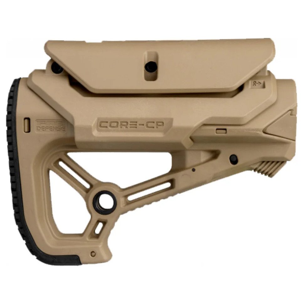 Опис Приклад FAB Defense GL-CORE S CP з регульованою щокою без труби. Tan