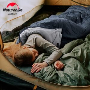 Спальний мішок від Naturehike має форму кокона, за рахунок чого забезпечується повноцінний відпочинок у зручній позі. Внутрішній матеріал – приємна на дотик бавовна високої якості, яка не викликає алергічну реакцію. Зовнішній матеріал – поліестер, що має водовідштовхувальні властивості. Ця тканина зберігає тепло, відрізняється стійкістю до розривів та водовідштовхувальних властивостей.