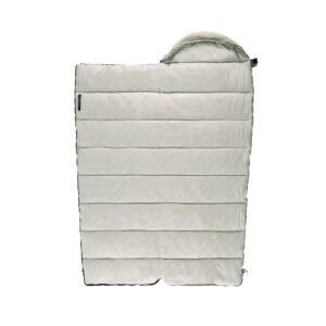 Внутрішня частина має підкладку з бавовни пероподібного типу. Це гіпоалергенний синтетичний матеріал, який не викликатиме дискомфорту для тіла. Зовнішній шар зроблений з поліестеру 210 Т. Дихаючий ефект дозволить почуватися комфортно і не пітніти всередині спальника. Сірий туристичний спальник має вбудований капюшон, що дозволяє захистити голову від вітру та холоду. Це дозволить вам відчувати комфорт навіть під час гірських турів.