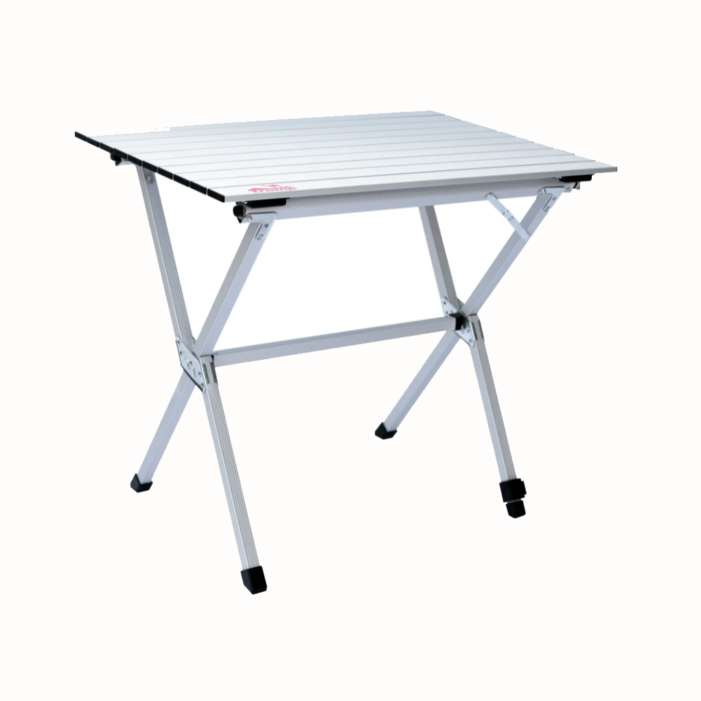 Завдяки своїй невеликій вазі і габаритам в складеному вигляді він не заподіє незручностей при транспортуванні і зберіганні. Надійність, міцність і довговічність цієї моделі забезпечується надійною системою фіксації конструкції в декількох точках. Хрестоподібний каркас з додатковими фіксаторами робить цей стіл дуже стійким. Складається» гармошкою ” стільниця і складаний каркас столика виконані з легкого і міцного алюмінію . Стіл зручно складається в компактний чохол з двома відділеннями (для каркаса і для стільниці), забезпечений ручкою для перенесення.