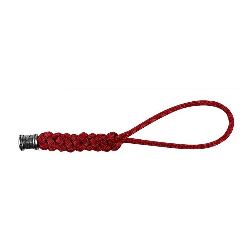 Розкішний червоний темляк гармонійно доповнить будь-який ніж. Виготовлений з червоного паракорду і декорований олов’яною бусиною з логотипом компанії.