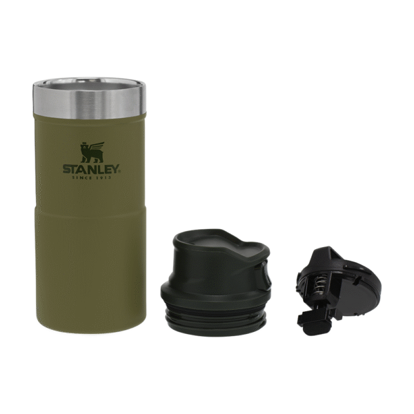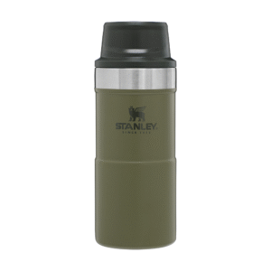 Виріб відрізняється незвичайним свіжим дизайном — оливкові тони, шорсткий на дотик матеріал зовнішніх стінок, контрастна за кольором кришка, сталева вставка і фірмова емблема Stanley. Все це робить термочашку статусним аксесуаром, який стане невід’ємною частиною вашого повсякденного образу.