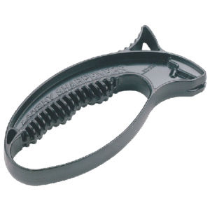 Точилка являє собою своєрідний кастет, який однаково зручно підходить і для правої і для лівої руки. У верхній частині «кастета» є проріз, в якій закріплений V-подібний точильний елемент з карбіду вольфраму. Досить кількох рухів ножем, щоб заточка була відновлена. Кут заточування у цій точила – 23 градуси. Для остаточного доведення і полірування в наявності спеціальні керамічні стрижні.