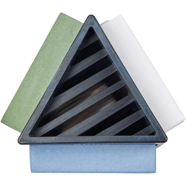 Точильний камінь Risam RWG-13 – створений для точного ручного заточування ножів та інших ріжучих інструментів. Складається із пластикової основи та трьох водяних точильних каменів різної зернистості. Зернистість 1000/3000/6000 – відповідно для грубого заточування, для заточування та для надтонкого заточування. Міцна конструкція забезпечує стійкість та запобігає ковзанню під час роботи. У комплекті також йде кутова направляюча та вирівнюючий камінь, а пластикова основа чудово підходить для зберігання води.