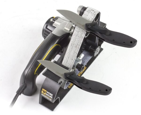 Насадка для точила Work Sharp Knife & Tool Sharpener Ken Onion Edition відрізняється використанням гнучких абразивних стрічок збільшеної довжини і ширини (2,54 см х 45,72 см). Завдяки наявності 5 гнучких абразивних стрічок різної зернистості (120, 220, 1000, 3000, 6000 grit) можна виконувати грубу і тонку заточування лез будь-якої форми, включаючи вигнуті, крюкообразные та ін. Для створення линзовидного підведення передбачена функція регулювання натягу ременя. Є можливість зміни кута заточування від 15 до 35°. Завдяки наявності еталонної майданчика для установки ножа в горизонтальному положенні за допомогою даної насадки можна точити леза зі складною формою спусків.