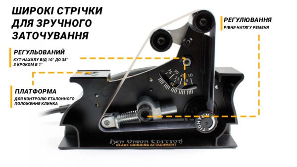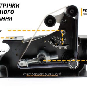 - Насадка використовує більш широкі і довгі абразивні стрічки, ніж точилка без насадки. Застосовуються стрічки розміром 2,54 см х 45,72 див.